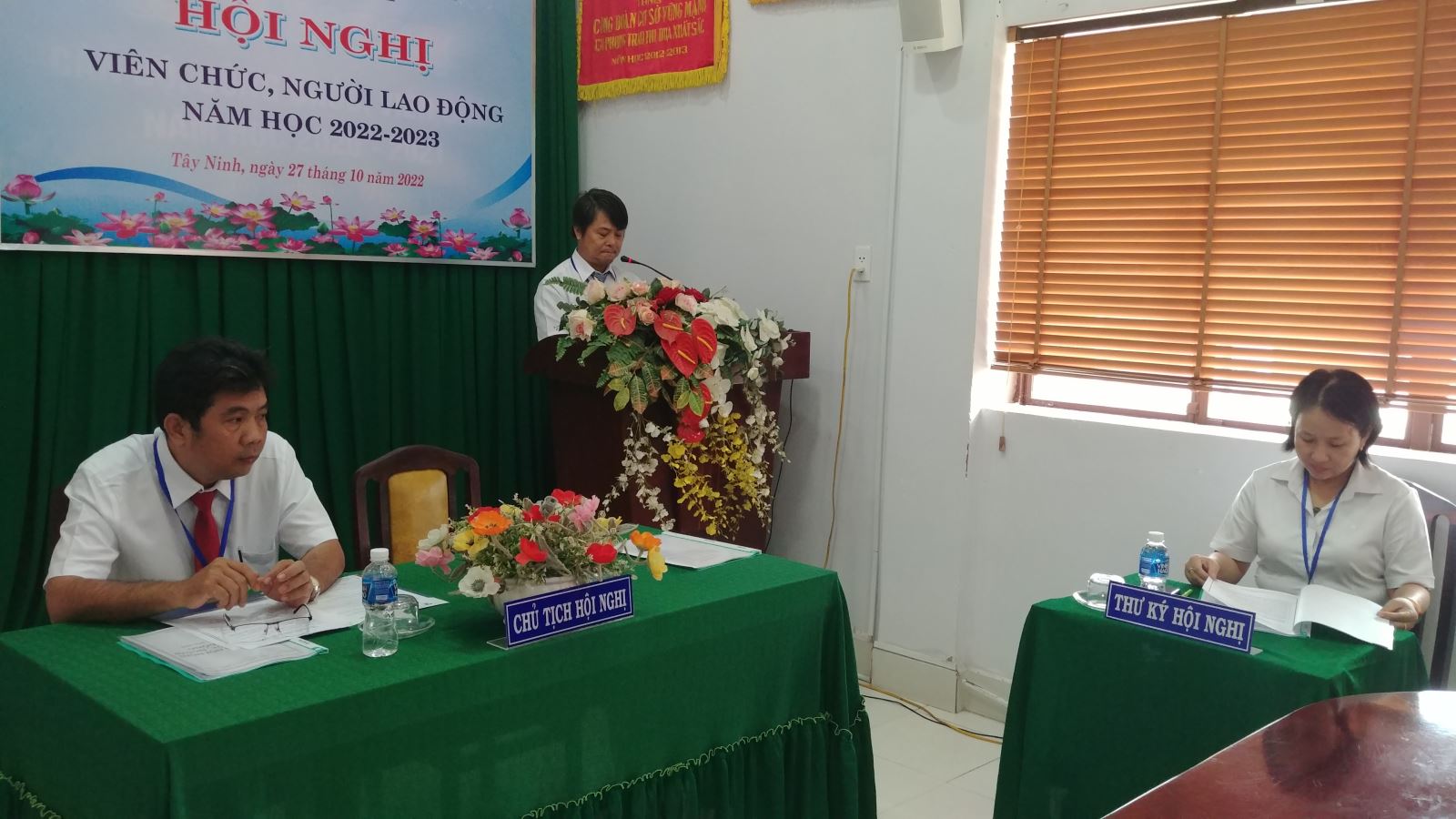 Ngày 27/10/2022, Trung tâm Giáo dục thường xuyên tỉnh Tây Ninh đã tổ chức Hội nghị Viên chức, Người lao động năm học 2022-2023. Dự Hội nghị có 14/14 viên chức, người lao động của đơn vị; Đoàn Chủ tịch Hội nghị gồm Phó Giám đốc phụ trách và Chủ tịch Công đoàn cơ sở, Thư ký Hội nghị là cô Phan Thị Hoa, Trưởng phòng Ngoại ngữ-Tin học.