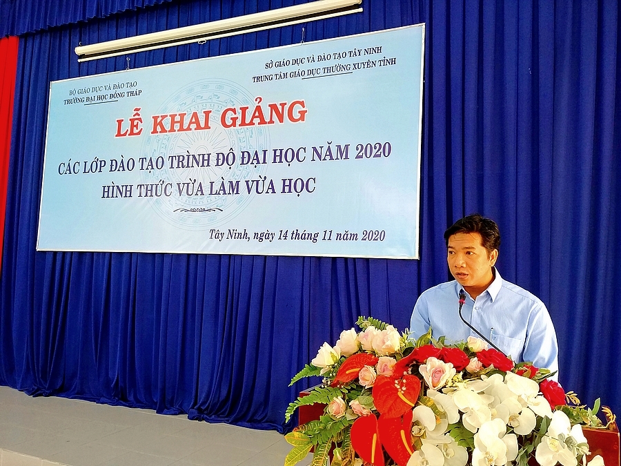 Ngày 14/11/2020 Trung tâm Giáo dục thường xuyên tỉnh Tây Ninh kết hợp Trường Đại học Đồng Tháp tổ chức lễ Khai giảng lớp Đại học ngành Quản lý đất đai (33 sinh viên) và lớp liên thông Đại học ngành Sư phạm Mầm non (33 sinh viên). Dự lễ có lãnh đạo, chuyên viên Trung tâm GDTX tỉnh Tây Ninh và Trường Đại học Đồng Tháp cùng các tân sinh viên.