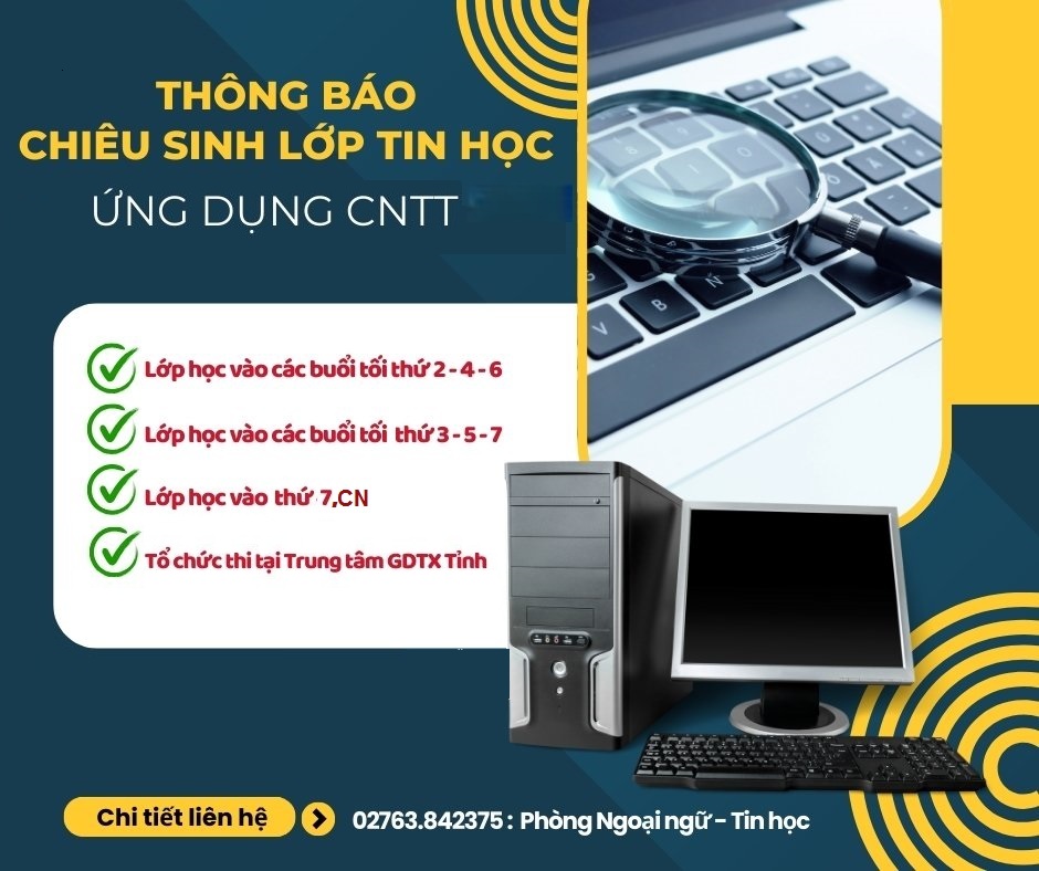 Trung tâm GDTX tỉnh Tây Ninh liên kết với Trung tâm tin học Đại học KHTN TP.HCM tổ chức kỳ thi chứng chỉ ứng dụng CNTT cơ bản & nâng cao khóa ngày 14/09/2025 cụ thể: